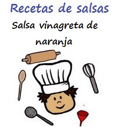 Salsa vinagreta de naranja. Ingredientes: Zumo de naranja (3 cs~1/2 naranja). Vinagre de vino blanco (1 cs). Aceite oliva virgen (3 cs). Pimienta (una pizca). Sal (una pizca). Procedimiento: 1-Partir la naranja por la mitad. 2-Exprimir el zumo de naranja. Colar. Verter en un bol. 3-Añadir el vinagre en dicho bol. 4-Verter muy lentamente un fino hilo de aceite de oliva virgen en el bol que contiene la mezcla anterior. 5-Espolvorear sal y pimienta. 6-Agitar enérgicamente con varillas para batir rotatorias. 7-Rectificar con sal. 8-Refrigerar. Se puede conservar en el frigorífico un máximo de 1 semana. Observaciones: 1-Se recomienda utilizar como aceite una mezcla de aceite de girasol/oliva en un ratio de 3 a 1 o aceite de girasol exclusivamente pues de lo contrario, el primero inhibe el sabor de la naranja. 2-Algunos autores sugieren: -Añadir otros ingredientes como ajo y/o cebolla y/o pimiento rojo y/o lechuga y/o mayonesa y/o yogur y/o miel y/o edulcorante y/o mostaza y/o gajos de naranja y/o ralladura de naranja y/o zumo de limón y/o vinagre y/o almendras y/o salsa de soja y/o chile fresco y/o especias (canela) y/o plantas aromáticas (estragón, hierbabuena, perejil, menta…)… -Incorporar ingredientes con propiedades organolépticas semejantes (e.g. vinagre balsámico de Módena o de cualquier tipo en lugar de vinagre de vino blanco; pimienta negra en lugar de blanca…) -Mezclar los ingredientes sin establecer un orden específico y agitar enérgicamente hasta lograr una distribución homogénea de los aquellos. De todos modos se recomienda que el aceite sea el penúltimo ingrediente y las especias junto con la sal las últimas. -Introducir los alimentos en un tarro de cristal en lugar de en un bol, cerrarlo y agitarlo enérgicamente. -Modificar la secuencia temporal de incorporación de los ingredientes (e.g. incorporan el aceite en primer o último lugar, las especias y la sal antes que el aceite de oliva…) 3-Las cantidades de los ingredientes principales (mostaza, vinagre y aceite) varían según los autores.