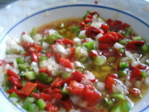 Descripción del procedimiento para elaborar salsa vinagreta de pimientos y huevo